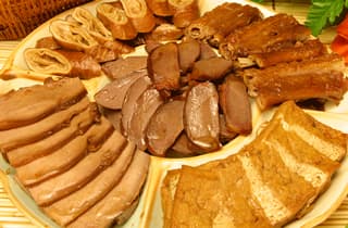 素菜类:五香面筋、香卤干子、五香腐竹、香卤千张、卤海带、卤花生、卤莲藕、卤毛豆、卤土豆等。