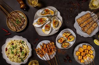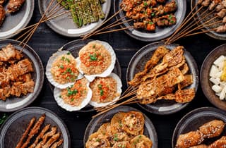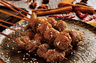 烤花样蔬菜串:烤波纹素鸡、海带节节烤、烤土豆片、整烤茄子、烤香菇、夹烤金针菇、波纹烤黄瓜、脆香烤藕片、整烤玉米、排烤韭菜、串烤鸟蛋、烤馒头、烤香干、烤绝代双骄、烤臭豆腐。