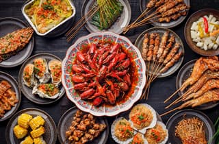 烤荤菜:飘香羊肉串、香烤猪肉串、香烤鸡肉串、夹烤骨肉相连、火腿肠、香辣烤香肠、飘香烤脆骨、飘香烤排骨、卤烤鸡爪、花式烤鸡肫、扎烤鸡腿、排烤鸡心、卤烤鸭胗、烤墨鱼丸、香辣小黄鱼、香辣牛肉丸、鲜香烤虾、生烤活鱼、烤鱿鱼、秘制烤鸡翅;